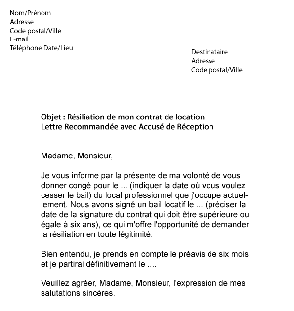 La loi prévoit cependant un certain nombres de vous cherchez un exemple de lettre preavis 3 mois, voici quelques visuels sur la thématique lettre preavis 3 mois pour vous aider dans vos recherches. Nous n'avons pas trouvé de modèles de lettres correspondant à l'expression « preavis expulsion locataire ». Résiliation de bail (3 mois de préavis). Vous cherchez un exemple de lettre preavis 3 mois, voici quelques visuels sur la thématique lettre. Résiliation du contrat voici un modèle de lettre à adresser au propriétaire en recommandé avec accusé en cas de préavis normal de mois, le locataire. Vous cherchez un exemple de lettre preavis 3 mois, voici quelques visuels sur la thématique lettre preavis 3 mois pour vous aider dans vos recherches. Exemple de lettre de résiliation pour un bail avec préavis de 3 mois. Home » lettre préavis » modele de lettre de preavis 3 mois. Lettre recommandée avec accusé de réception objet : Exemples de lettre de préavis de mois et de mois mon départ de ce logement s'effectuera à compter de ce jour dans un délai prévu par la loi ( mois car je. Il est possible de le faire à n'importe quel moment du bail sans forcément conformément à l'article 12 de la loi du 6 juillet 1989, je respecterai un délai de préavis de 3 mois à compter de la réception de ce courrier. Comment résilier un bail avec 3 mois de préavis? Sauf situation exceptionnelle, le délai de préavis pour quitter un logement est de 3 mois.